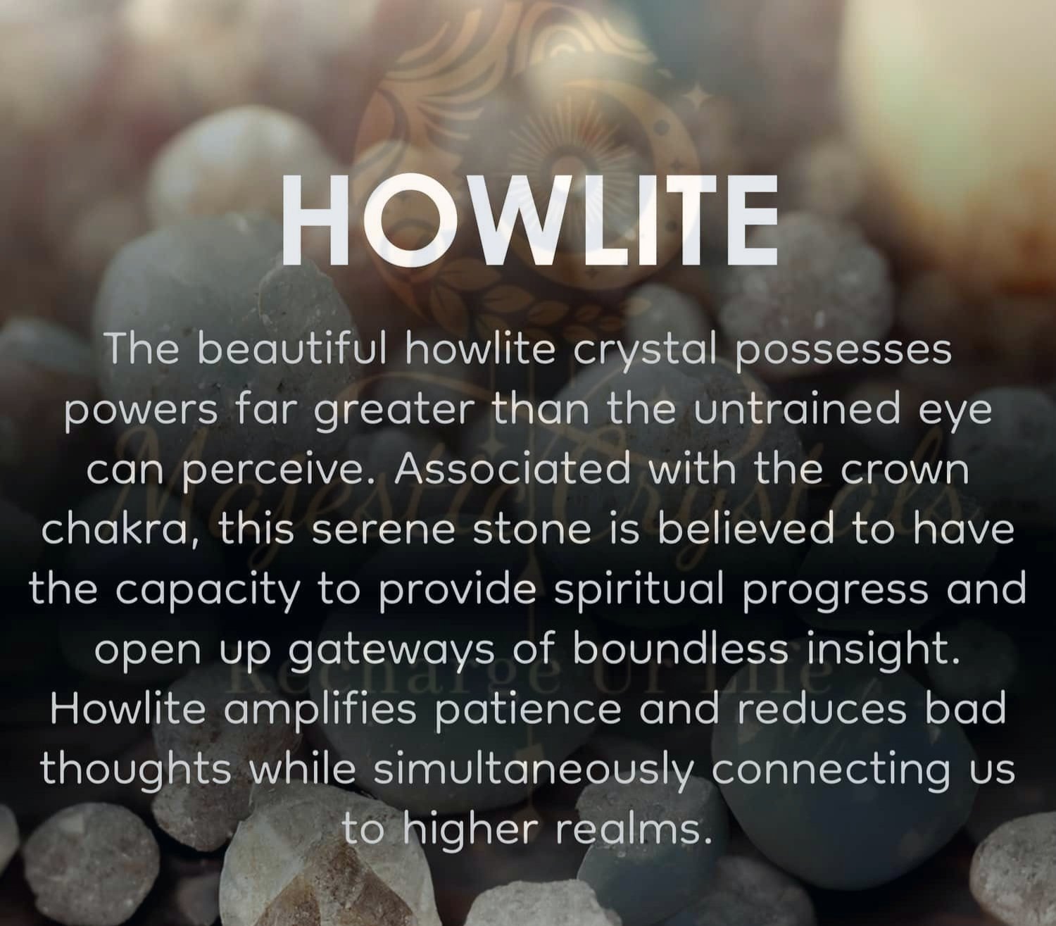 Howlite is a stone of awareness. It can help you to remain calm and centered in times of stress or chaos. Howlite also aids in the development of patience, tolerance, and understanding. Wearing a howlite bracelet can help you to stay connected to the peace and tranquility that resides within you.